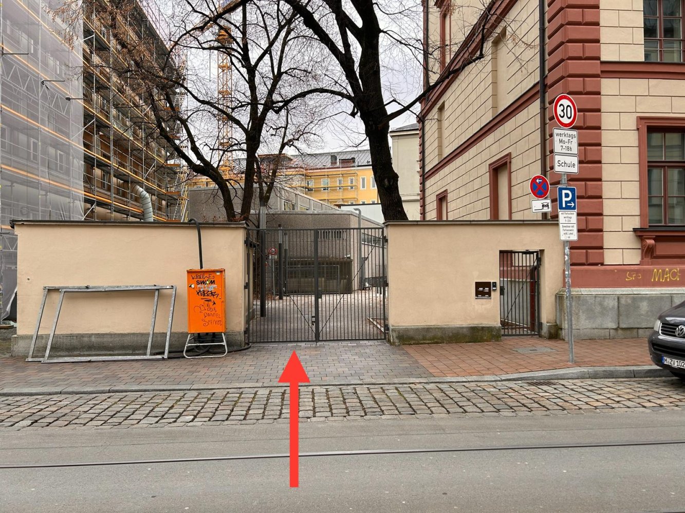 Gewürzmühlstrasse 8, 80538 München - wegen der aktuellen Baustelle befindet sich der Eingang übergangsweise visavis in der Thierschstrasse 46 (vgl. Bild).